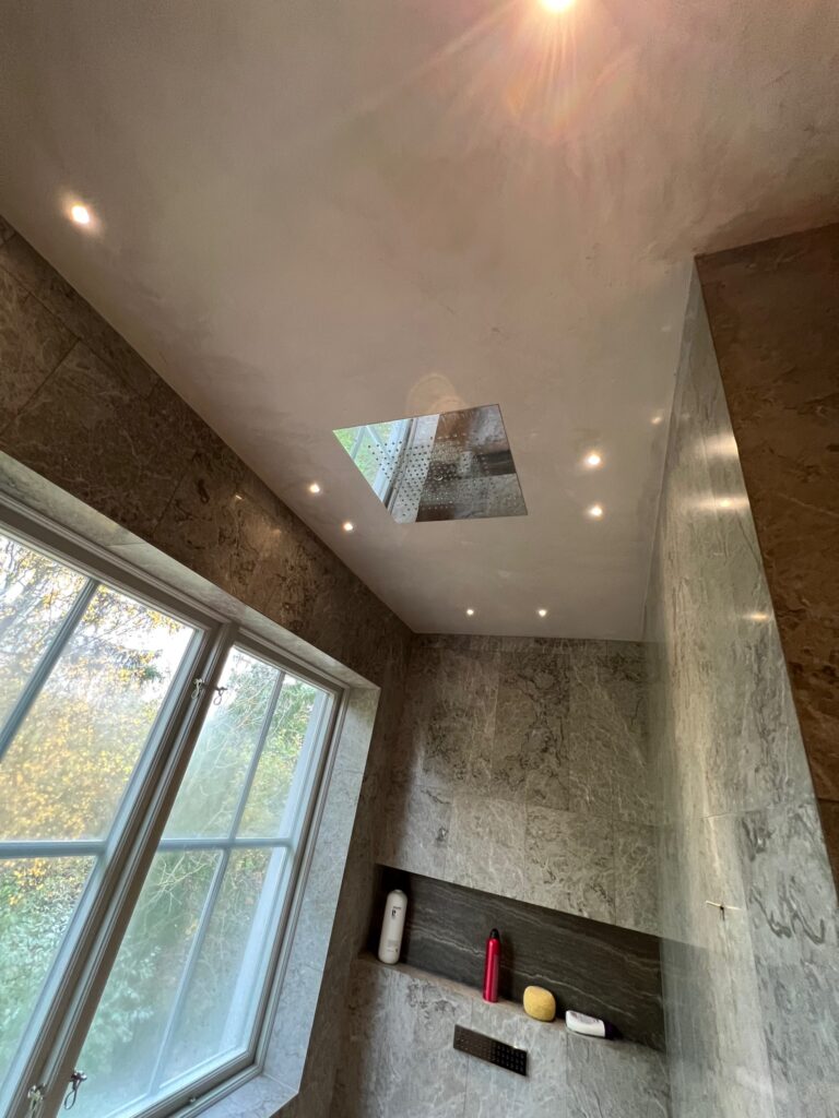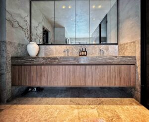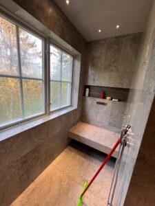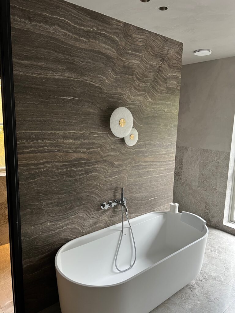 Badrum i travertin & dekorputs – Designat av Christoffer Liffner