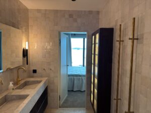 På Urgrund är varje detalj av stor vikt. Projektet på Gustavsborg visar hur ett genomgående materialval kan skapa sammanhang mellan två separata badrum – med handgjorda material och noggrann stenhantverk som grund.