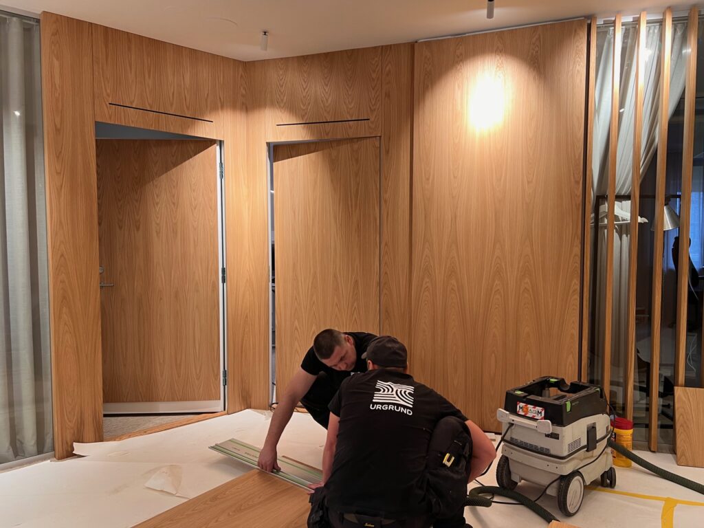 Kontorsrenovering Stureplan – Ekfanér, sisselmatta och hårdvaxolja.