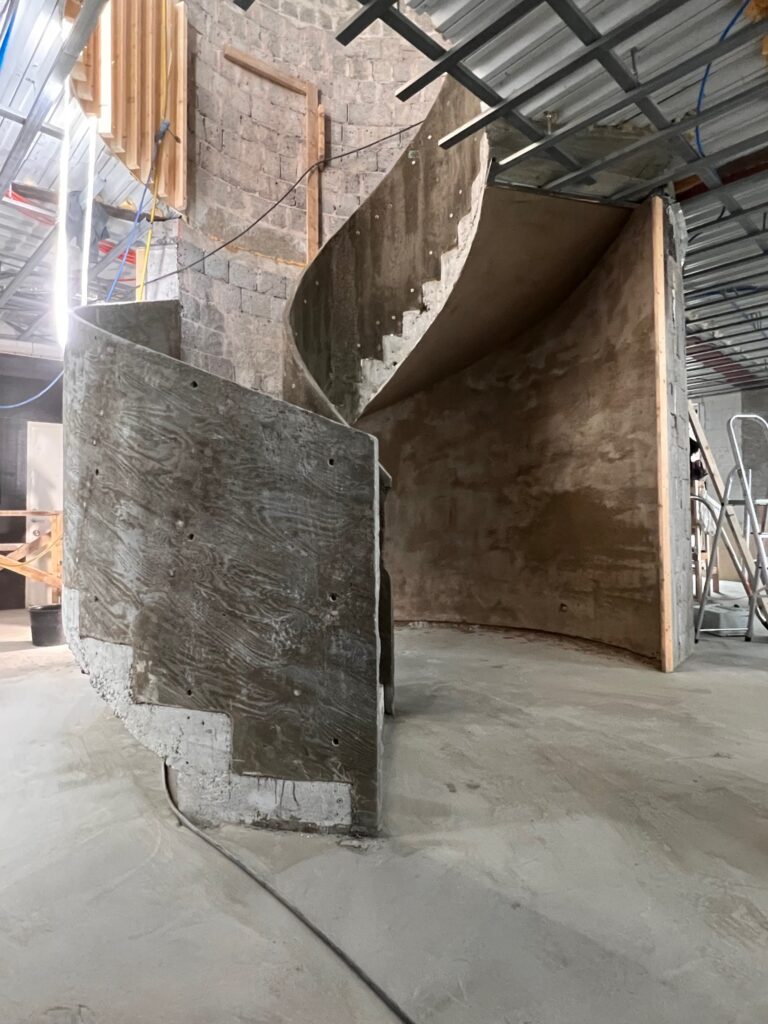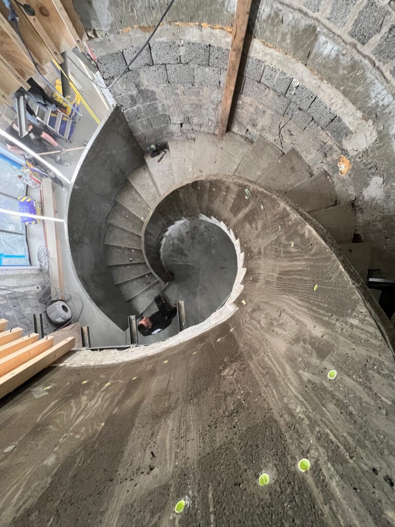 Det som verkligen lyser upp detta hem är den magnifika trappan. Våra skickliga snickare har inte bara skapat strukturen utan också formgett och gjutit ett elegant rundat räcke. Det är dessa detaljer som tar detta byggprojekt från fantastiskt till extraordinärt.