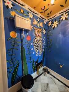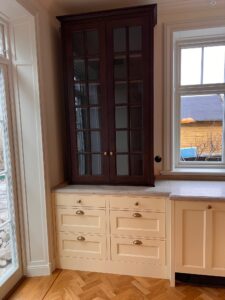 Handmålade furupaneler, Dinesen-golv och platsbyggda snickerier i ett historiskt hem återfött med respekt för originalet